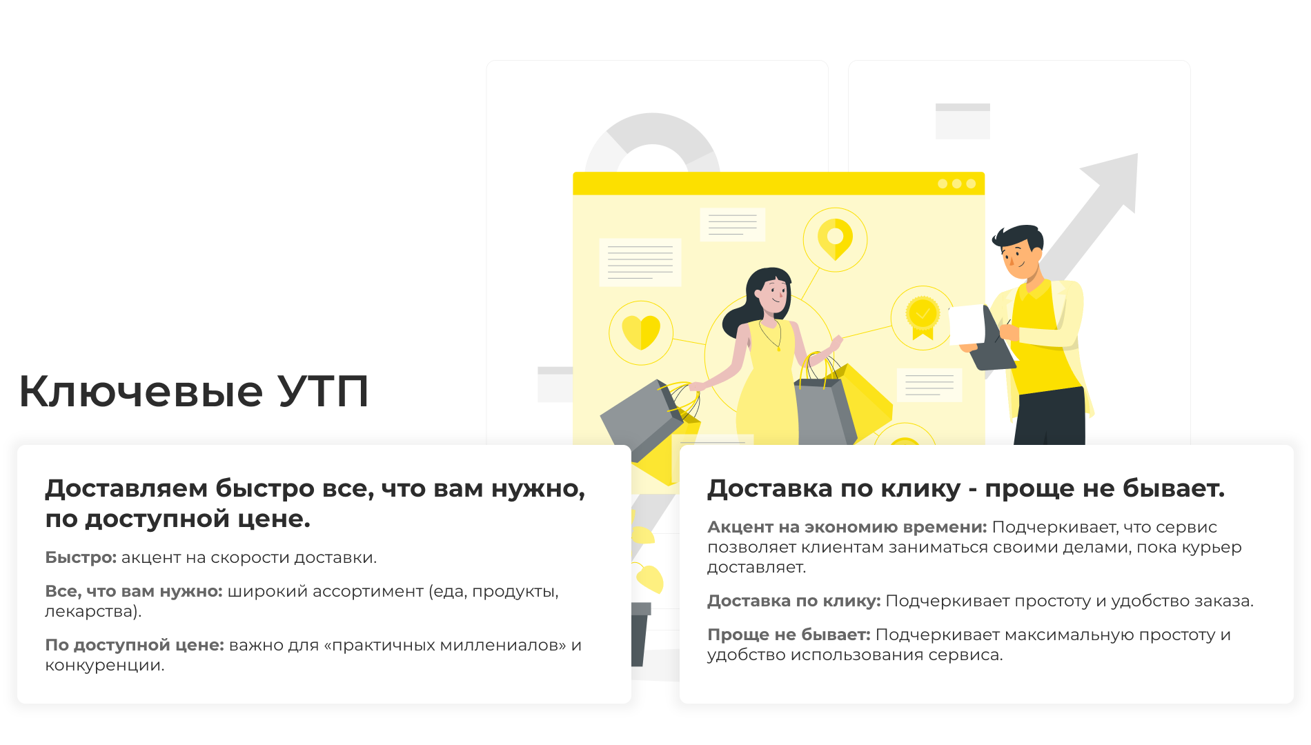 Расширение ассортимента: добавление новых категорий товаров (продукты, цветы, аптеки) может повысить привлекательность сервиса.
